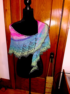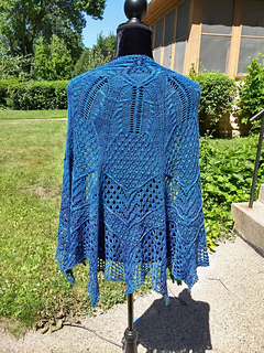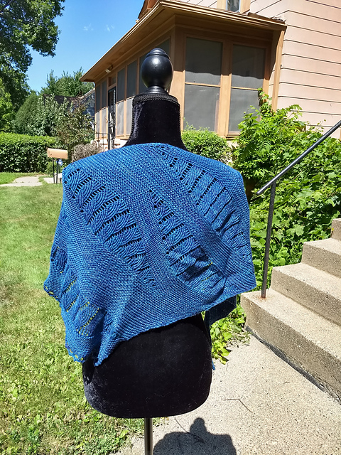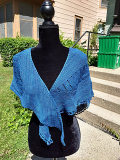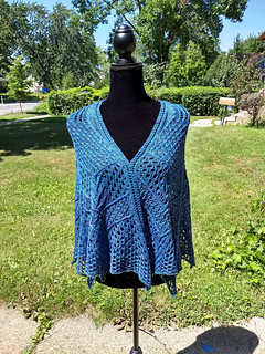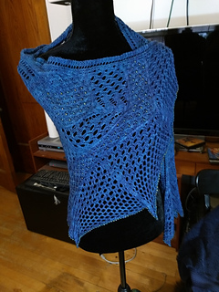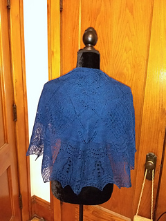 That's the name of the pattern, honest.  It's a circular shawl, and alas the picture doesn't do it as much justice as one would like.  But it's a dusky navy, small and light.  An accent piece, it will not keep you warm at night.